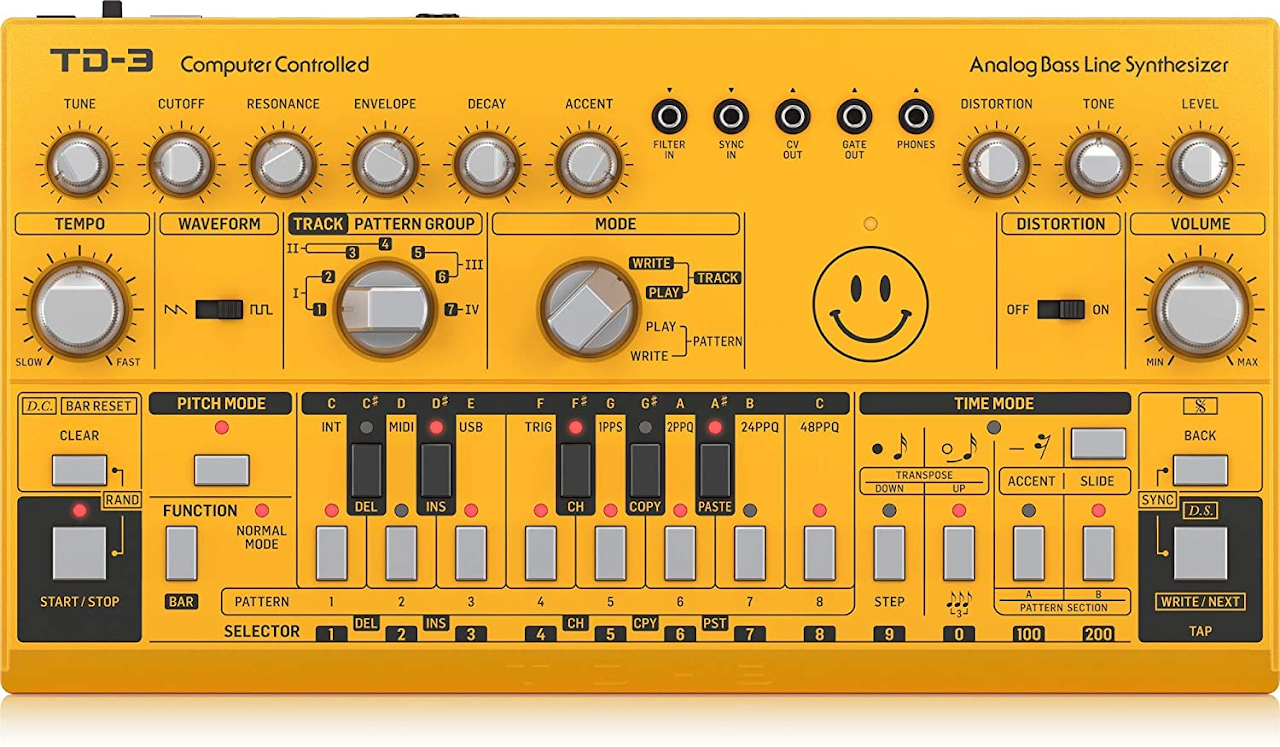 Producido solo de 1981 a 1984, el Roland TB-303 fue un tremendo fracaso comercial como reemplazo del bajo, sin embargo, pronto encontró su lugar como uno de los sintetizadores más queridos para lo que se conoció como Electronic Dance Music (EDM). . Un homenaje ultra asequible y fiel al sintetizador icónico que generó la música house, además de un circuito de distorsión completamente nuevo, el TD-3-AM le permite evocar prácticamente cualquier sonido con una delicadeza y facilidad increíbles. Con su ruta de señal analógica pura, secuenciador de 16 pasos y filtros VCO, VCF y VCA auténticos, el TD-3-AM seguramente se convertirá en uno de sus sintetizadores favoritos.