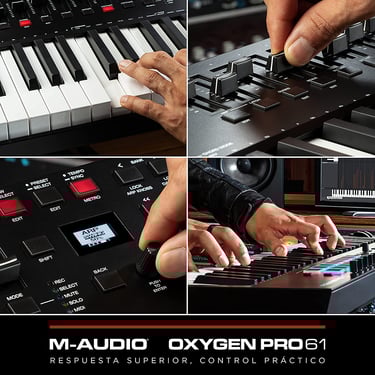 Lo esencial en un teclado MIDI: 61 teclas sensibles a la velocidad, semipesadas con aftertouch y zonas asignables para instrumentos de muestreador virtual y plugins de sintetizador virtual.