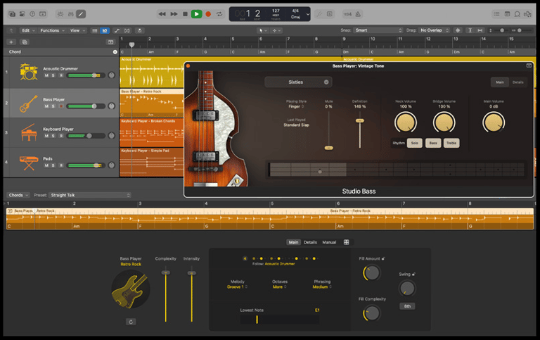 • Crea tu grupo con Session Players, cinco músicos virtuales profesionales diseñados para crear sutiles interpretaciones que responden a tus indicaciones.