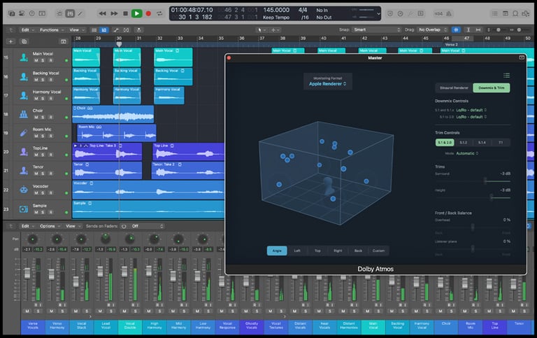 • Usa las herramientas de creación de audio espacial para mezclar y exportar música a Dolby Atmos.